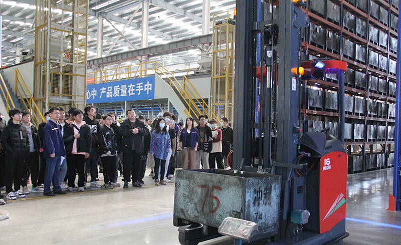 夏玲娜向各位的到来表示热烈欢迎,陪同大家参观了标准链智能化生产车间。她向师生们介绍了广东会的历史沿革、主营业务,以及发展近况与未来规划,展示了公司在智能化生产方面取得的成就;郭主任介绍了公司在员工福利、人文关怀方面的相关制度,表示公司一直以来都致力于为员工提供良好的工作环境和职业发展空间;人社局领导向大家介绍了诸暨在人才招引方面的相关政策,希望广大优秀毕业生能留在诸暨,携手并进,共同发展。