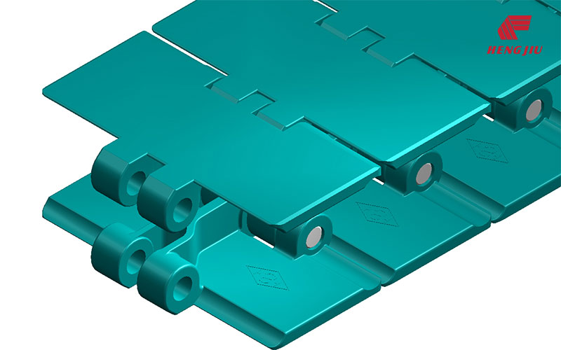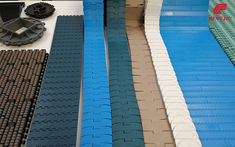 标准塑料链板用于一般的易拉罐、PET瓶、玻璃瓶及纸盒包装输送;高摩擦性链板(带橡胶垫、顶部带橡胶条)用于爬坡和下坡输送;带滚珠的链板用于输送物有堆积的输送机上,以减少产品间的背压力和降低噪音;这一系列的产品使输送设备得以标准化,从而可以使用相同标准的链轮、轨道、回转轮和摩擦条。