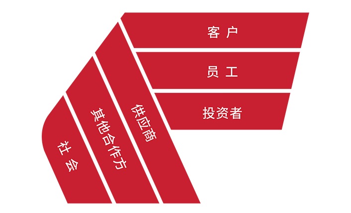 LOGO中的六条飘带分别代表企业的六个相关方面,分别是“客户、员工、投资者、供应商、其他合作方、社会”,我们认为,这些相关方是构成企业的关键要素,缺一不可。企业受益于他们,也要回馈给他们。这种基于相互依存的多赢关系,是广东会能够持续发展的关键。
